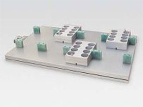 Alu-Heizplatten in Grundplatte und in beiden Deckeln mit umlaufender Wärmeisolierung für höchste Temperaturgenauigkeiten im System. Die beheizten Deckel werden von einem Roboter bewegt.